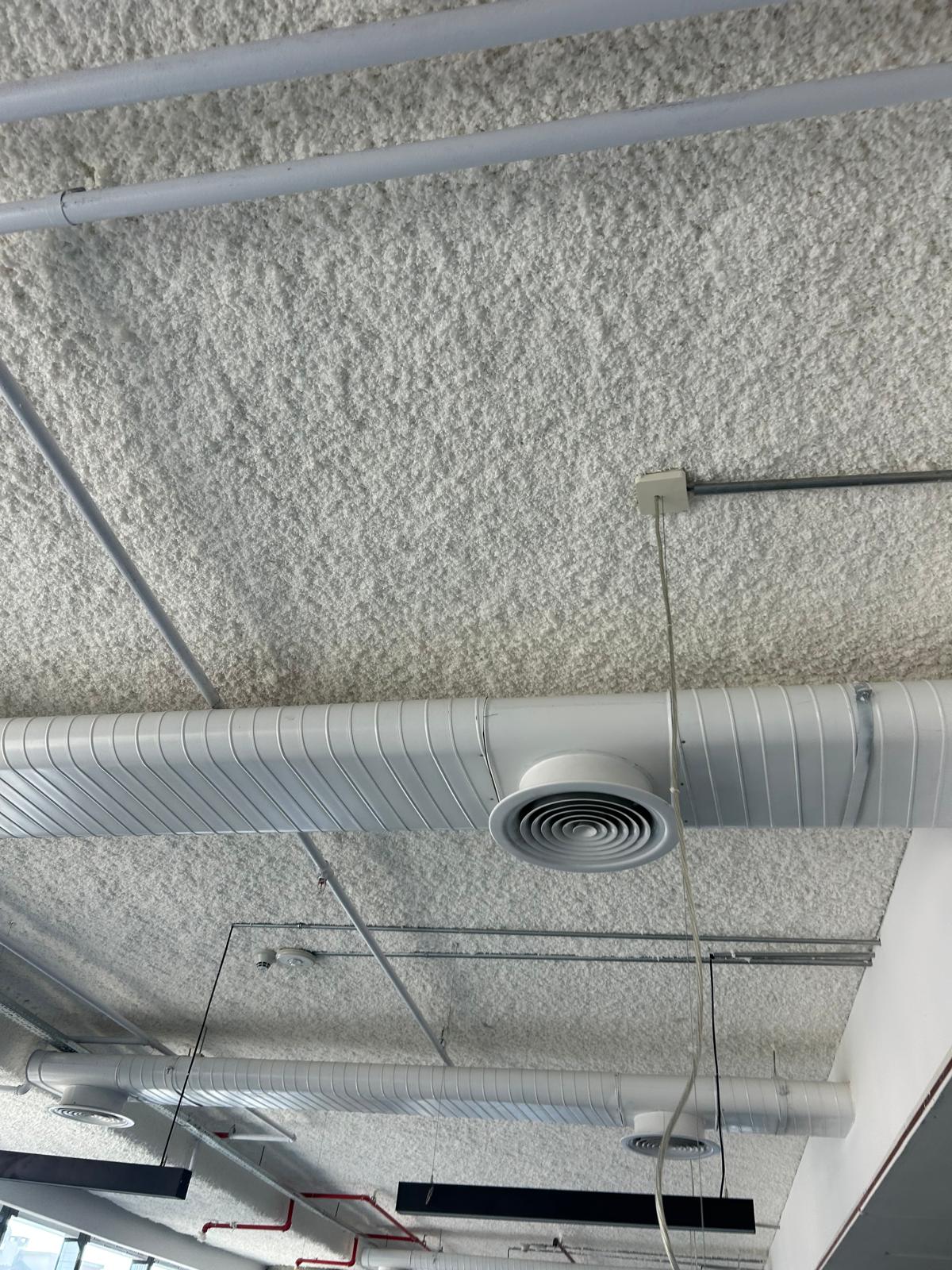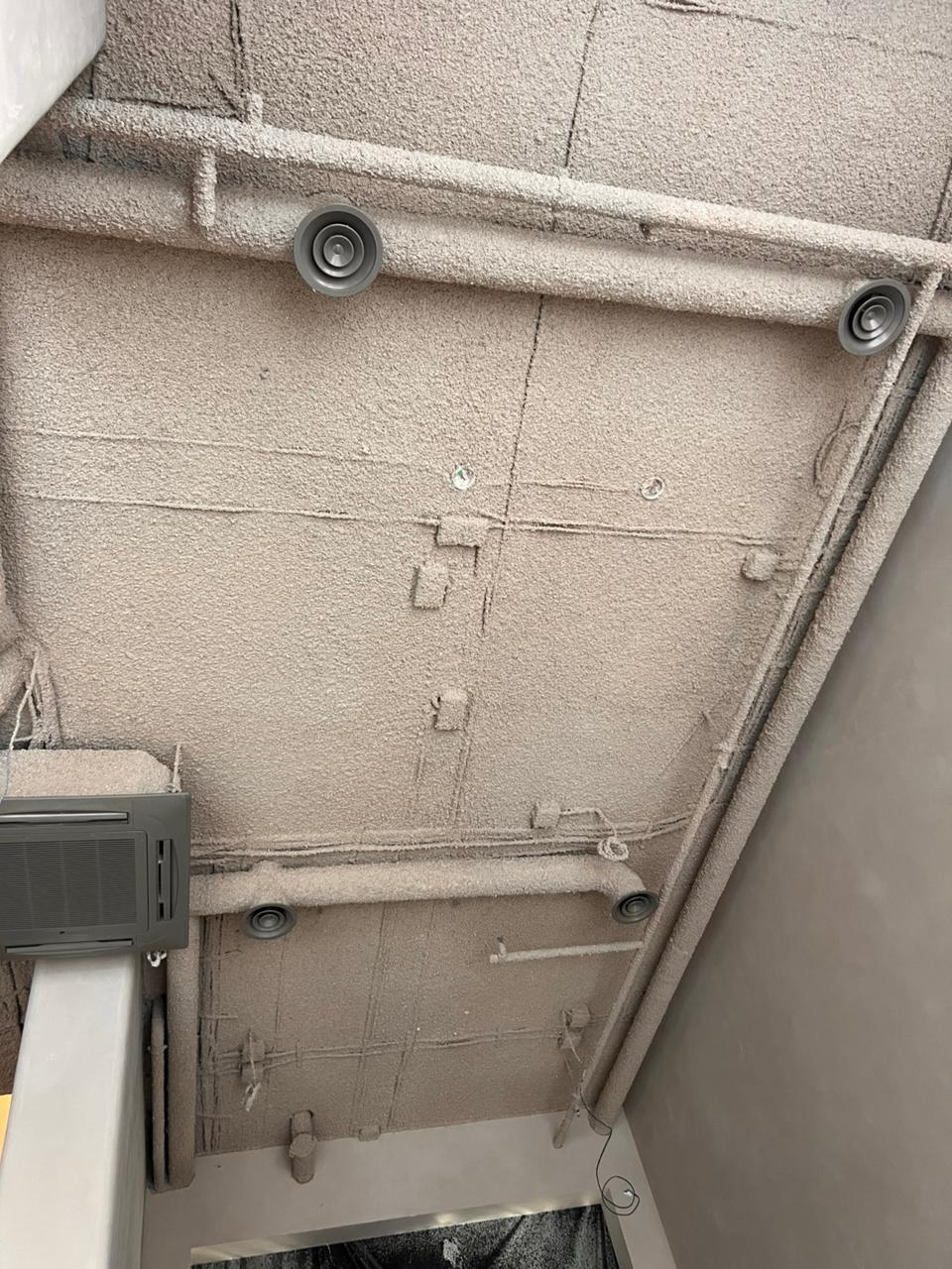 Acoustic spray is cellulose-based and is sprayed onto ceilings to reduce the effects of reverberation. It can be applied to any surface type quickly and efficiently and absorbs sound, reducing echo.
